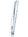 Transparent dubbeldildo med en flexibel design för solo- och partnerlekar.