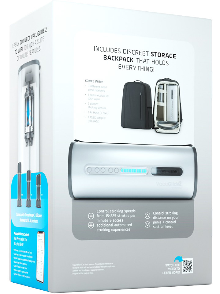 VacuGlide 2 bygger vidare på originalets styrkor men har förbättrats på flera viktiga punkter. Den uppdaterade modellen erbjuder mer finjusterad kontroll över sug och stroking, förbättrad tätning för jämnare vakuum samt en mer responsiv och raffinerad användarupplevelse. Resultatet är mjukare rörelser, bättre precision och ännu större möjligheter att styra tempot – perfekt för edging, orgasmkontroll och längre sessioner.