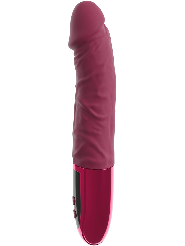 VARELO Natural Vibrator kombinerar verklighetstrogen design med lyxig känsla. Den sensuella röda ytan i silkesmatt i kombination med glansig finish gör den till en fröjd för både ögat och kroppen. Med sin realistiska form, markerade ådror och tydliga ollon ger den en naturlig och fyllig upplevelse som känns intensiv och autentisk.