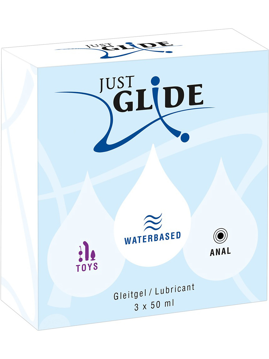 Set med tre populära glidmedel (50 ml) från Just Glide till ett bra pris. Samtliga glidmedel är vattenbaserade, 100% veganska och snälla mot känslig hud. De går utmärkt att använda tillsammans med latexkondomer.