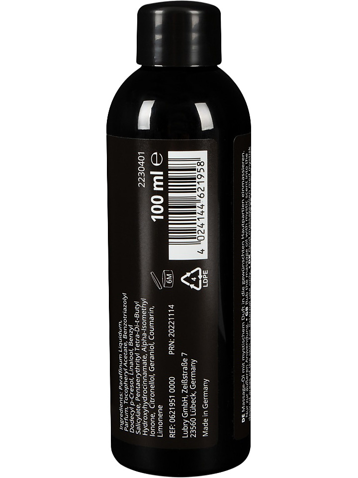 Detta är en erotisk massageolja med en stimulerande och mystisk doft, inspirerad av ”Tusen och en natt”.