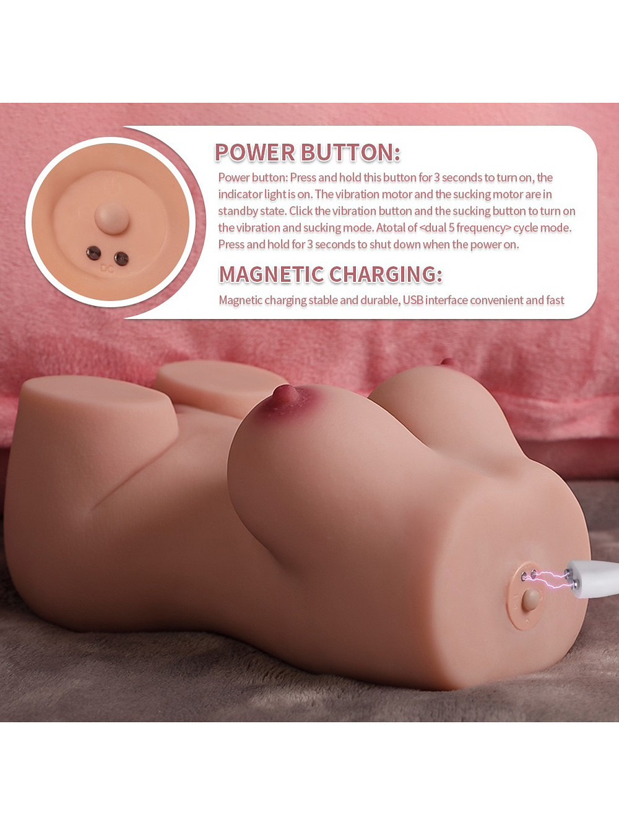 Denna realistiska torso-masturbator för män är designad med två öppningar – vagina och anus – samt härliga bröst som kan greppas för ökad njutning, vilket ger dig friheten att utforska dina fantasier på ditt sätt.