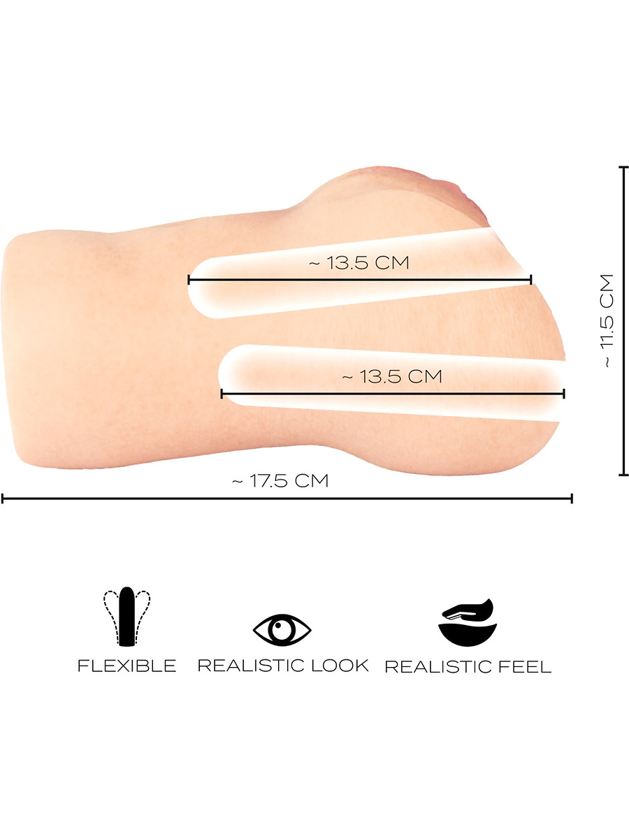 Den hyperrealistiska designen erbjuder två separata njutningstunnlar – vagina och anus – båda tighta men flexibla för maximal kontakt. Perfekt när du vill växla känsla och tempo utan att byta leksak.