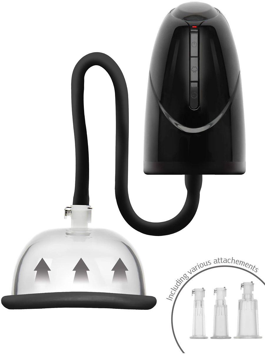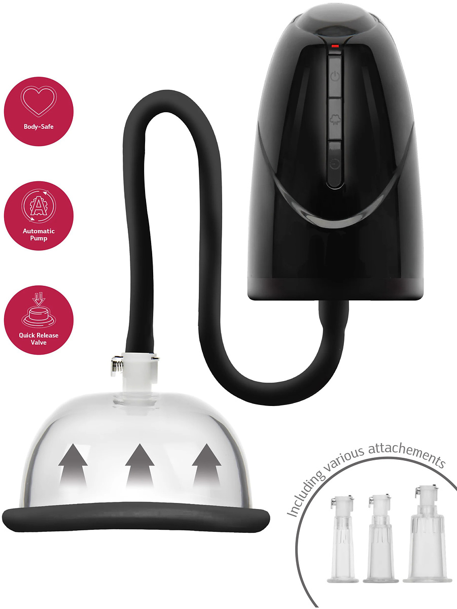 Förutom den större vakuumkoppen för vagina eller bröst medföljer tre mindre koppar i olika storlekar, perfekta för riktad stimulans av klitoris eller bröstvårtor.