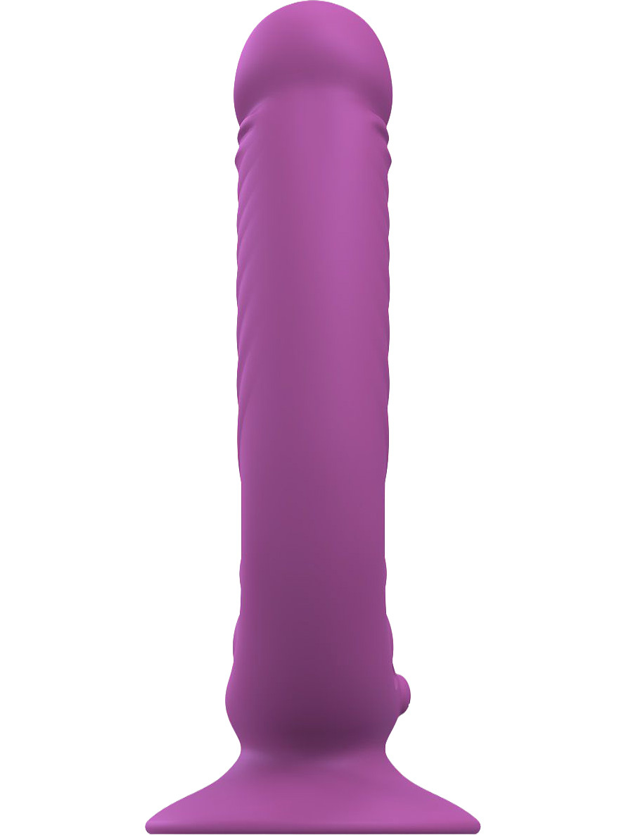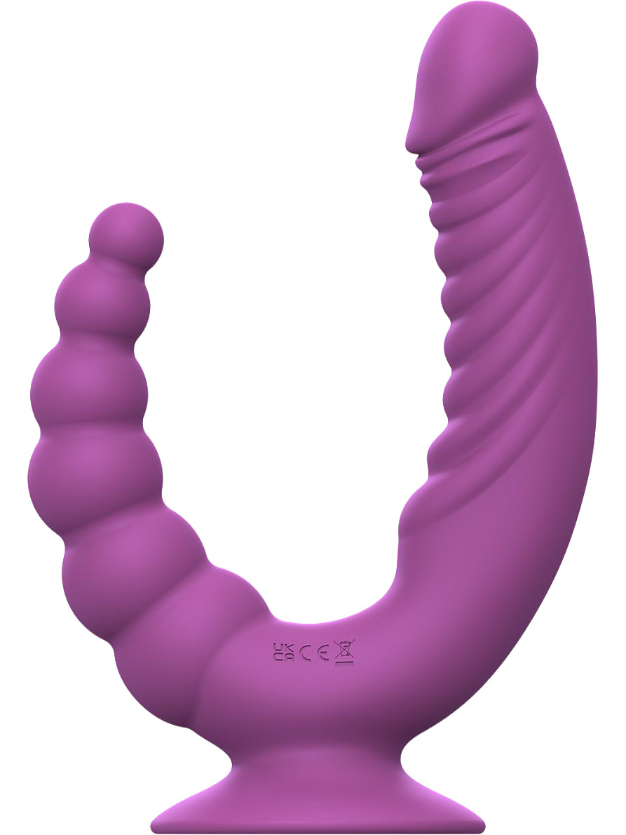 Den dubbla utformningen gör det möjligt att stimulera vagina och anal samtidigt. Den ergonomiska formen följer kroppen naturligt och uppmuntrar till lekfull variation. Låt det större skaftet med markerad topp och mjuka räfflor placera sig vaginalt samtidigt som det kulformade skaftet stimulerar baktill.