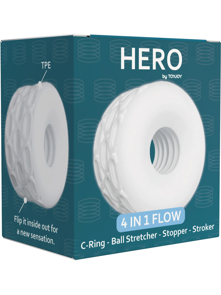 4-in-1 Flow från ToyJoy's Hero-serie är en mångsidig ring som ger dig flera funktioner i ett kompakt och flexibelt format. Den är designad för att anpassa sig efter dina preferenser och låta dig variera upplevelsen – oavsett om du vill ha mer kontroll, intensitet eller stimulans.