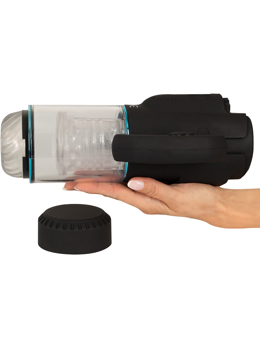 Den roterande innersleeven arbetar även upp och ner (strokingrörelse) vilket skapar en djup och omslutande massage längs hela penis. Den dubbla motorn ger kraft och precision, medan 9 massagelägen med olika rytmer gör det enkelt att hitta rätt känsla för stunden.