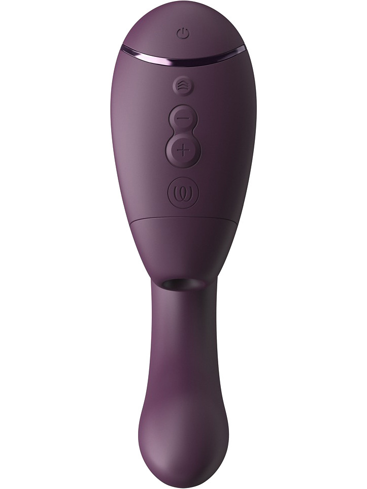 Det böjda skaftet med sin starka, djupa vibration ger exakt stimulans till G-punkten. De två motorerna kan användas var för sig eller i perfekt harmoni för en komplett och synkroniserad njutningsupplevelse. Kombinationen av lufttryck och vibration skapar en sensationell balans mellan yttre och inre stimulans.