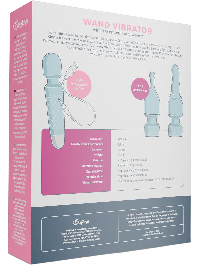 Wandvibratorn är ergonomiskt utformad för att ligga bekvämt i handen och är tillverkad i mjuk silikon som känns len och behaglig mot huden. Den jämna vibrationstekniken sprider kraften genom hela huvudet för en stabil och effektiv stimulans.
